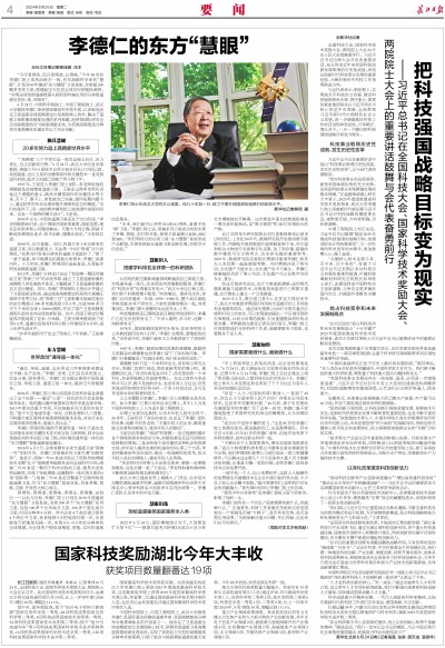 “党对科技事业的全面领导、新型举国体制优势的充分发挥,是我国科技事业实现跨越发展的根本保障。”在遥感领域潜心研究大半辈子,2023年度国家最高科学技术奖获得者、武汉大学李德仁院士深感新时代新征程习近平总书记对科技战略的擘画更长远、视野更开阔、方向更明确、目标更清晰。