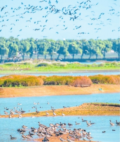 东西湖府河湿地天鹅湖。