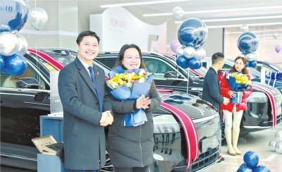 长江日报讯(记者郝天娇 通讯员胡秋宁)2月7日,长江日报记者来到位于江岸新能源汽车产业园的华为问界销售门店,不少市民正在选购心仪车辆。门店经理方丹告诉记者,门店于今年1月5日开业,1个月交付了150辆汽车。春节期间照常营业的门店共销售9辆车。