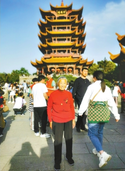 母亲游黄鹤楼的照片。
