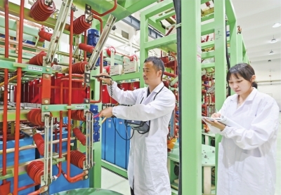 工作人员在国家脉冲强磁场内进行工程试验。