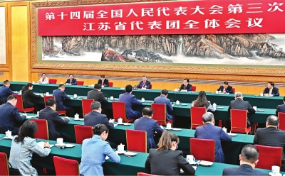 江苏代表团审议认真,气氛活跃。赵建军、徐光辉、张俊杰、李肖娜、缪汉根、柯军等6位代表分别就加快绿色低碳转型发展、打造产业科技创新中心、推动转化医学建设、建设和美社区、推动传统产业发展、保护传承传统戏曲等发言。