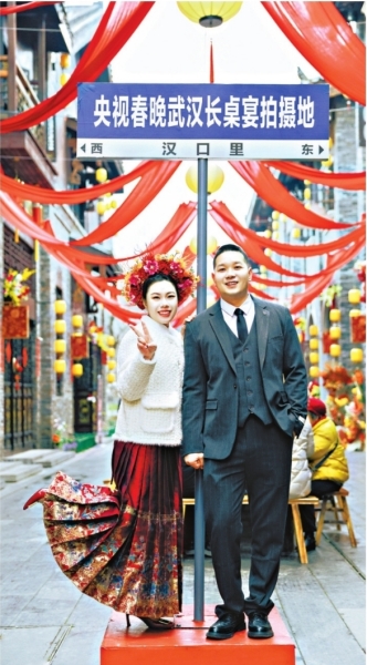 画面中是一对领到结婚证的新人,他们的脸上洋溢着对未来充满憧憬的笑容,背景是今年央视春晚武汉长桌宴拍摄地。大家都知道今年央视春晚播出后,很多外地游客前来“跟着春晚游武汉”。但是,作为摄影师的我还是第一次在这里见证新人的幸福时刻呢。