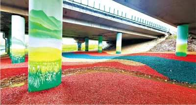 长江日报讯(记者宋磊 通讯员金婵 实习生黄晶晶)近日,光谷八路九龙互通高架桥下,一幅崭新的红、蓝、黄三色路面犹如绚烂的地毯,吸引了众多市民的目光。大家不知道的是,这幅色彩斑斓的路面是由去年秋天飘下的枯枝落叶“重生”而来。
