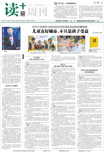 本期《读+》记者专访同济大学建筑与城市规划学院景观系副教授董楠楠,在他看来,爱护孩子,就要让他们全身心地投入安全快乐的环境之中。“也许,我们的身子要俯得更低一点儿,与孩子的交流更温柔些,才能发现他们更需要什么。”
