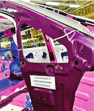 近日,在岚图汽车工厂的车身车间,长江日报记者见到了这款新能源车的核心安全“武器”——全球首创的2000MPa一体式热成型激光拼焊门环。