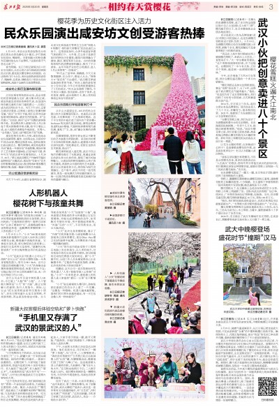 3月19日,随着气温逐渐回升,长江日报记者走进武大校园,只见此前稍显“含蓄”的中樱和晚樱已悄然开放。嫩绿的枝头上,花苞正陆续鼓起,部分“性急”的花朵已率先展开花瓣,清新淡雅的模样吸引了不少游客拍照留念。