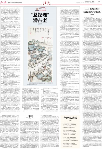 潘占奎不是汉口人,老籍在鄂东,可是汉口话说得比哪个都好。他靠卖艺为生,没得专门的场子,碰到宽一点的街面,就地围个人圈子,开口就说,说笑话。一口“汉腔”,几句话就要你开口露牙齿。大家笑得松心,笑完了有骂“短命的!”,有夸“真好玩”的。更多地说他是个“笑话公司”。