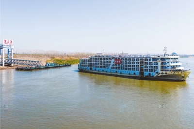 载满650台车谷新能源汽车的长安民生滚装船在汉南港扬帆起航。