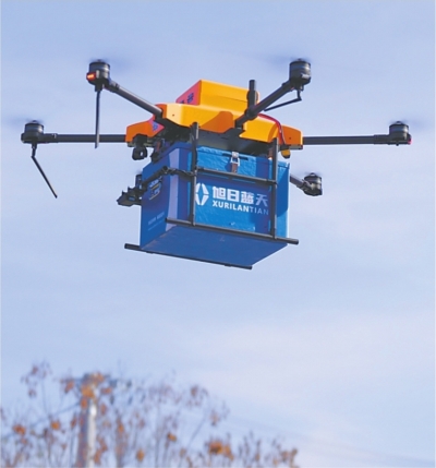 在黄陂区姚家集沿河星空河畔营地景区,旭日蓝天(武汉)科技有限公司的无人机为下单游客送外卖。