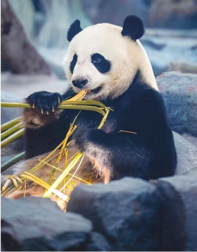 一个小女孩突然指着玻璃幕墙惊呼:“妈妈,您快看,大熊猫在啃甘蔗!”我顺着她手指的方向看过去,只见那只名叫“武林”的大熊猫四仰八叉地躺着,爪子里攥着竹笋,啃得正香。碎竹渣散落一地,它的嘴角还挂着青翠的笋衣。阳光从高处洒落下来,像为它打了光。那一刻,等候与人潮的烦躁仿佛被这只呆萌的“熊孩子”一并吞掉,只剩下会心一笑。