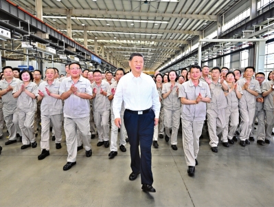 5月19日至20日,中共中央总书记、国家主席、中央军委主席习近平在河南考察。这是19日下午,习近平在洛阳轴承集团股份有限公司智能工厂考察时,同企业职工在一起。