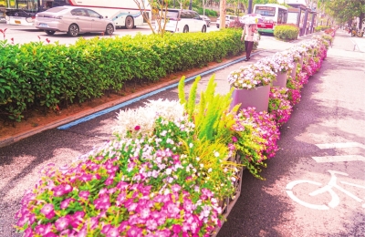 市园林和林业局绿化养护处相关负责人介绍,三阳路沿线绿化带景观原先以绿篱和草坪为主。如今,草坪升级为花带,形成“人在林中走,四季有花赏”的多层次、复合型园林景观。
