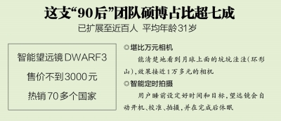 “由于缺乏资本支持,我们这支创业团队选择以众筹平台为起点,开展‘定制化’开发项目,也因此直接触达消费者需求。”黄凯介绍,在日均上百封客户邮件中,他们捕捉到新的市场:“有用户反馈,用显微镜看完细胞后,更想看看月亮上的‘细胞’——这给了我们跨界的灵感。”
