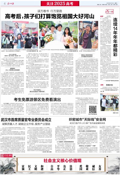 此外,6月17日,高考考生凭准考证可免费游览黄鹤楼公园,还可免费敲千禧钟祈福。