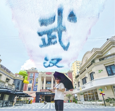 我忍不住凑近细看,丝带的线条如同灵动的波浪,在半空中自由流淌。我和旁边一位工作人员攀谈起来。她热情地介绍道:“这条丝带以长江为创意构思,取名‘云境天幕 璀璨星河’,整体长约34米,宽16米呢。”她一边说着,一边指着装置:“它会随着阳光、风雨等环境的变化改变色彩,就像空中飘逸的彩虹,白天和晚上呈现出的效果不一样。”听着她的介绍,我想说:“武汉,你也太会了!”