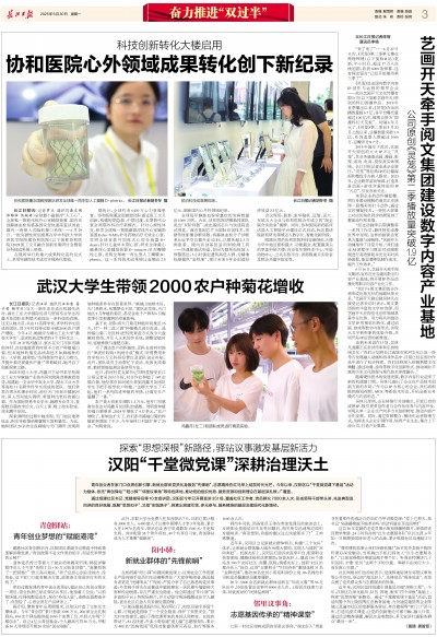 长江日报讯(记者汪洋 通讯员汪如意 易子茹 赖宇方)当大一新生还在适应校园生活时,湖北工业大学国际经济与贸易专业学生冯鑫月及团队在荆楚大地闯出一条科技助农路。这支以她为首,共由11名跨学校、多学科学生组成的团队,用3年时间带动彭市镇2000农户增产增收。今年4月,她被评为湖北工业大学“最美大学生”,是该校获此殊荣的5个本科生之一。