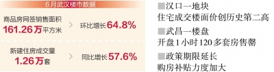 长江日报记者调查发现,这些政策精准地切合了市场需求,武汉楼市回暖势头强劲。武汉市住房和城市更新局最新数据显示,6月全市商品房网签销售面积达161.26万平方米,环比增长64.8%;新建住房单月成交1.26万套,相比去年同期成交量激增57.6%。