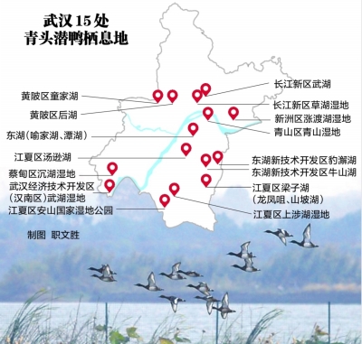 今年4月,国家林业和草原局公布最新调查数据:全国青头潜鸭种群数量为2555只,与2012年的1000只相比实现了倍增。2024年12月,武汉记录到540只青头潜鸭,占全国总数超五分之一。全国确认的青头潜鸭重要栖息地有16个,武汉的府河湿地(童家湖)、豹澥湖名列其中。