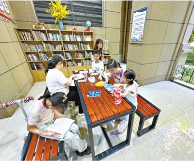 小学一年级的陈玉涵放暑假了,妈妈带她到阅读角,“这里图书有2000余册,早上凉快带孩子过来,还可以认识不少小伙伴”。小学五年级的倪语萱说:“这里的书比家里多。”