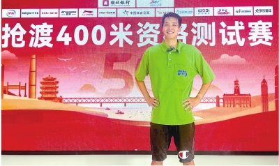 隋宗霖在个人抢渡400米资格测试赛现场。