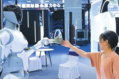 6月26日,观众在2025(中国)亚欧商品贸易博览会上与一款通用智能机器人互动。
