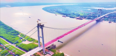 双柳长江大桥连通武汉市新洲区和鄂州市华容区,主跨1430米,宽50.5米,采用双向8车道设计,工程全长35公里,设计时速120公里,是目前长江上最宽的钢箱梁悬索桥。