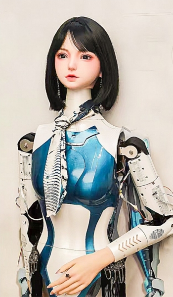 万睿科技团队研发的人形机器人艺术装置。