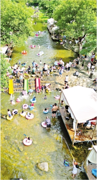 “考虑到暑期亲子出游偏多,今年我们对香溪谷营地进行了升级,以前的溪畔木台改造成小包厢,遮阳效果更好,大人们能安心地在包厢里看孩子们玩耍。”营地相关负责人吴小前介绍,溯溪场地的一旁,便是香溪谷篷客露营地,有34间云阁、玻璃房和森林小木屋,无论是日游还是夜宿,市民都能得到良好的夏日体验。“今年夏天几乎每天都有上千人来溯溪游玩,景区热闹极了!”