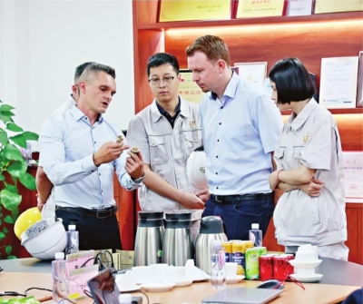武汉泛洲中越合金有限公司与德国利勃海尔集团现场交流产品细节。