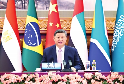 习近平指出,当前,世界百年变局加速演进,霸权主义、单边主义、保护主义甚嚣尘上。金砖国家作为全球南方第一方阵,要坚持弘扬开放包容、合作共赢的金砖精神,共同捍卫多边主义,维护多边贸易体制,推进“大金砖合作”,携手构建人类命运共同体。