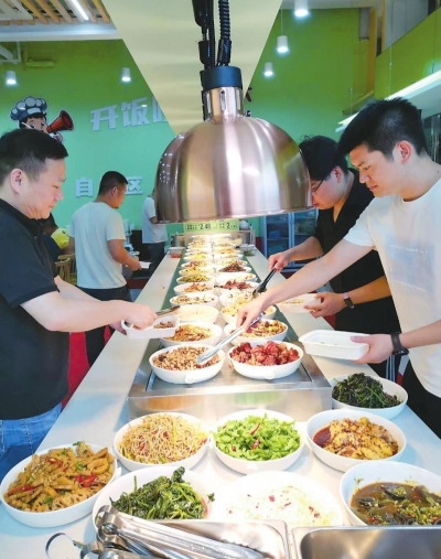9月6日11时许,长江日报记者来到位于汉口马场路武汉天街的米禾堂快餐店,只见40多盆现炒菜肴被整齐地摆放在自助区,顾客按需自选菜肴并按重量交费。