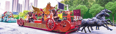 “楚风汉韵”等主题花车9月11日在晴川大道巡游,今日亮相2025中国文化旅游产业博览会室外展区。