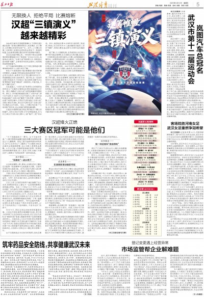 “天下英雄谁敌手?曹刘。生子当如孙仲谋。”三国时期那段波澜壮阔的争霸史直到现在都还让人心潮澎湃。曾是三国古战场和演兵场的武汉,如今正在举办以“三镇演义”为主题的2025武汉城市足球超级联赛,也让无数人看得热血沸腾。9月12日起,汉超将迎来城区组第一阶段收官阶段的激烈角逐,汉口、武昌、汉阳,汉超三大赛区的“三镇演义”也将迎来第一波争冠决战。