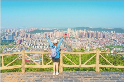 距八分山仅一刻钟车程,便隐藏着“武汉小青岛”——柱皮山。它是八分山旁的一座小山,20分钟左右即可登顶,十分适合攀登游玩。从其西侧起点沿着S形柏油路蜿蜒而上,登至半山腰,纸坊老城区便映入眼帘。近处是错落有致的红色屋顶,远处是山峦与湖水交织,恍惚间仿佛置身青岛的环海公路。尤其推荐在弧形弯道处取景,搭配蓝天绿树,张张都是清新治愈系大片。