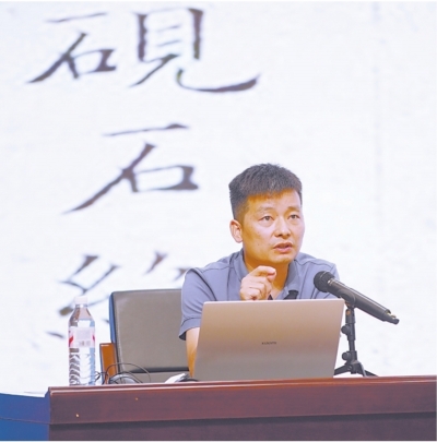 柳国良在“艺心向党”崇德尚艺名家新秀大讲堂解析武汉书法文脉。