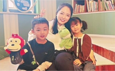 长江紫都幼儿园副园长白云和孩子们在一起。