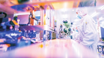 武汉光迅科技股份有限公司工作人员在生产线作业。