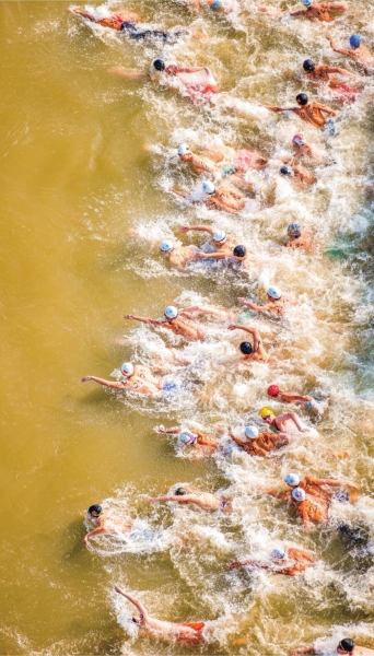 2025年第50届武汉7·16渡江节上,“泳士”争渡。