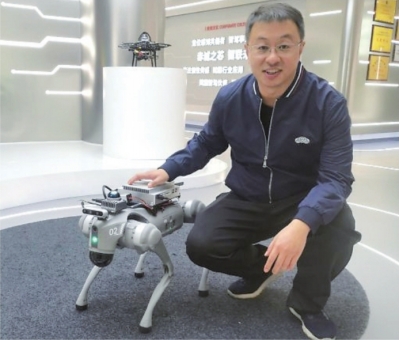 诚芯智联技术负责人殷磊演示定位导航技术在机器狗上的应用。