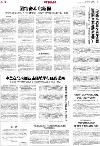 新华社吉隆坡10月26日电(记者谢希瑶 王嘉伟)当地时间10月25日至26日,中美双方在吉隆坡举行经贸磋商。中国商务部国际贸易谈判代表兼副部长李成钢在磋商结束后对中外媒体记者表示,双方就妥善解决彼此关注的多项重要经贸议题形成初步共识,下一步将履行各自国内批准程序。