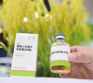 禾元生物展示的重组人白蛋白注射液(水稻)。