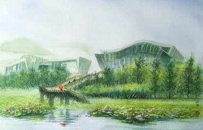 如果以古琴台为参照,琴台大剧院、琴台音乐厅的造型,很容易仿古,弄出一堆飞檐翘角来附庸风雅。现有设计则不然,大胆运用时代艺术语言,如同法国卢浮宫出现了玻璃金字塔,不乏标新立异。外形上的钢琴和古琴,并非一眼就可以简单比附,全得纵容想象去放飞。这个角度“琴键飞奔”排山倒海,那个角度“水袖长舞”风情万种,只在“横看成岭侧成峰”中品味。
