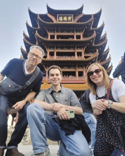 英国曼彻斯特哈雷管弦乐团成员游览黄鹤楼。