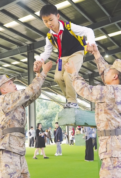 快速越过壕沟、翻越高墙、跑过独木桥……400米障碍训练场上设置有跨桩、壕沟、矮墙、高板跳台、独木桥、高墙和低桩网7个障碍物,是官兵们在真实战场上可能遇到的各种障碍的模拟物。学员们的顽强拼搏、奋力奔跑,让市民喝彩连连。