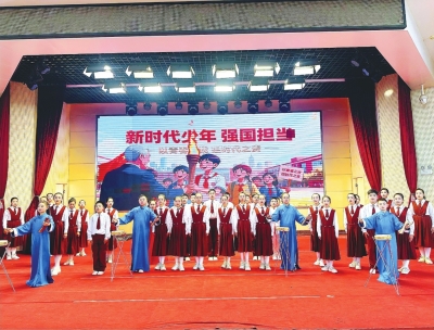 学校打破艺术社团单一育人局限,将湖北大鼓与五育深度融合,尤其在德育渗透方面成效显著。社团深挖红色资源与时代主题,创作《党的光辉记心怀》《小小英雄心向党》等红色曲目,以黄陂方言唱词传递爱党爱国情怀。