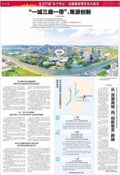 武汉正以“一城三廊一带”为载体,加快建设具有全国影响力的科技创新中心。