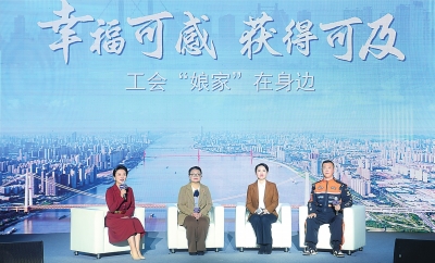 报告会访谈沙龙环节,“幸福”与“获得”成为热议关键词。外卖骑手张宝剑、中冶南方工会主席曲贞、武昌区总工会副主席金晓通过真诚对话与鲜活案例,展现了工会在服务职工、保障权益、促进成长、推动共建等方面的扎实作为,生动勾勒出一幅有温度、有力量、有参与的“职工之家”立体画卷。