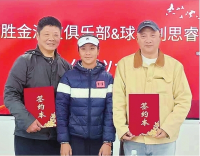 刘思睿(中)成为旗胜金满贯俱乐部首位签约球员。