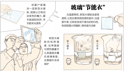 想象一下,未来有一天,我们家中的窗户玻璃能随着温度变化。高温天气里,它能自动变成奶白色,阻隔太阳辐射,保持屋内凉爽。当温度不断降低,它则会越来越清透,让更多阳光透到室内。我们研发的新型水凝胶,只需往窗户玻璃上一抹,就能让这个场景成为现实。